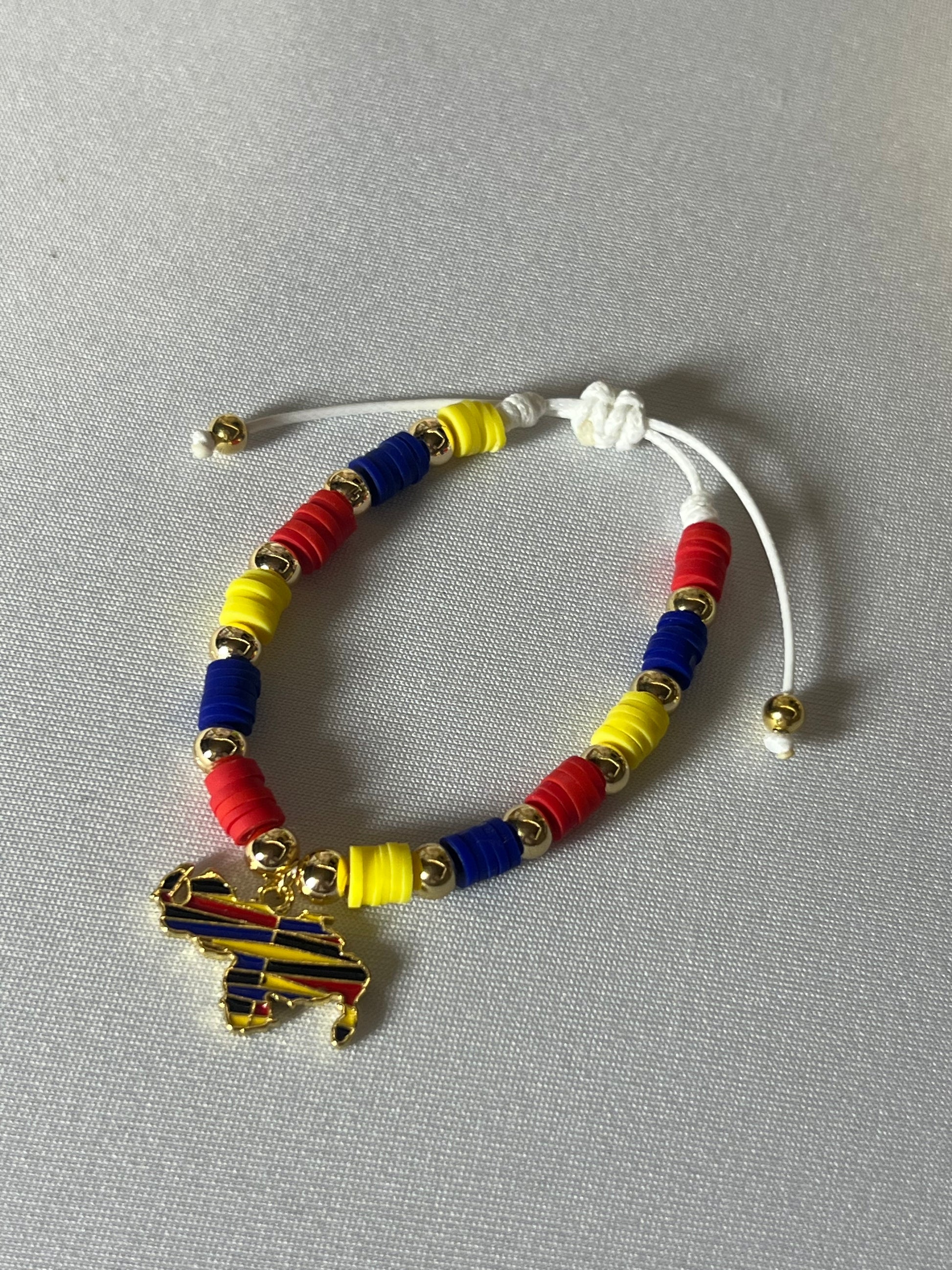 Discover the unique artistry of our handcrafted bracelet. Adorned with a delicate pendant featuring the map of Venezuela, it's a meaningful way to show pride for your country.